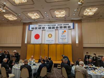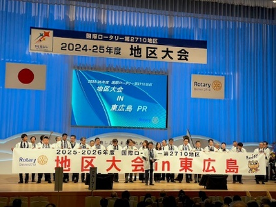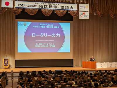 2024年06月06日(木) お知らせ 第2710地区研修・協議会(2024/4/21) 4月21日に広島国際会議場にて第2710地区研修・協議会が行われました。 国歌および奉仕の理想を斉唱した後、 上田文雄ガバナーエレクト、脇正典次年度ラーニングファシリテーター、井内康輝ガバナーの3名より挨拶をいただきました。 その後「ロータリーの力」と題して、神戸須磨ロータリークラブの滝澤功治氏の講演を拝聴しました。 懇親会も開催され、参加した14名にとって有意義な時間となりました。