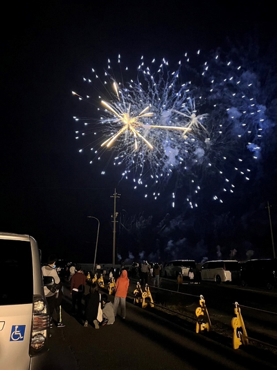 2024年10月29日(火) お知らせ 第13回ふるさと想い出花火大会(2024/10/26) 今年も昨年に引き続き10月26日に行われた第13回ふるさと想い出花火大会に 福祉型障害児入所施設 華の浦学園 の入所者の皆様をご招待させていただきました。 子供たちも花火の大音響にびっくりしながらも楽しんでくれたことと思います。
